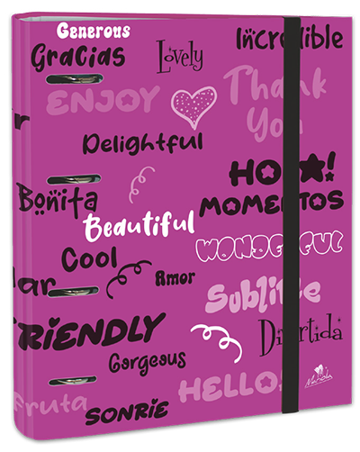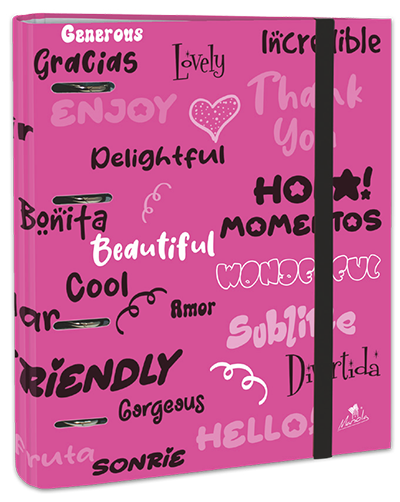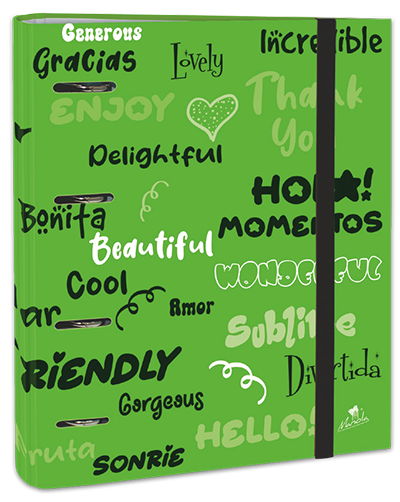 EXPOSITOR CARPEBLOCK 4 ANILLAS 40 MM CARTÓN FORRADO EN PAPEL PASTEL PLASTIFICADO MATE CON FRASES