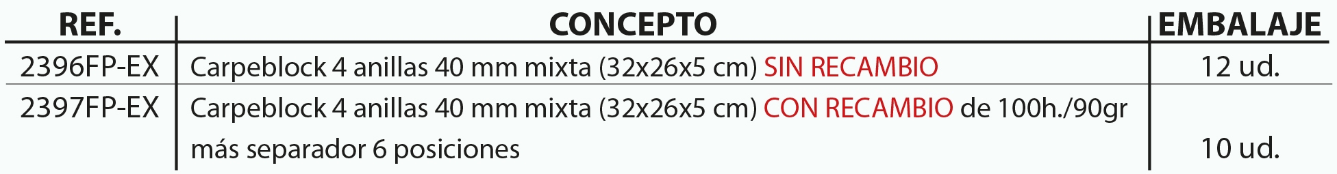 EXPOSITOR CARPEBLOCK 4 ANILLAS 40 MM CARTÓN FORRADO EN PAPEL IMPRESO CON DISEÑOS PLASTIFICADO MATE