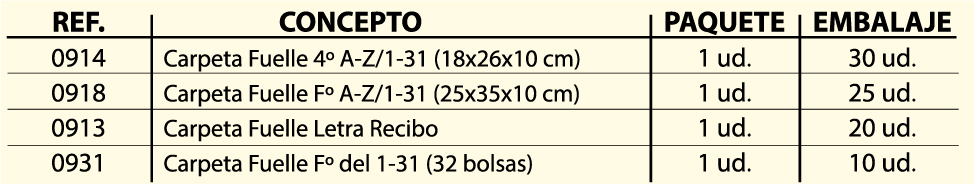 • Carpetas fuelle, Maletines fuelle, Clasificadora, Portafirmas