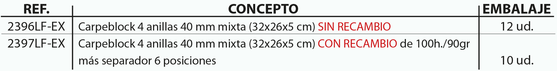 EXPOSITOR CARPEBLOCK 4 ANILLAS 40 MM CARTÓN FORRADO EN PAPEL IMPRESO CON DISEÑOS PLASTIFICADO MATE
