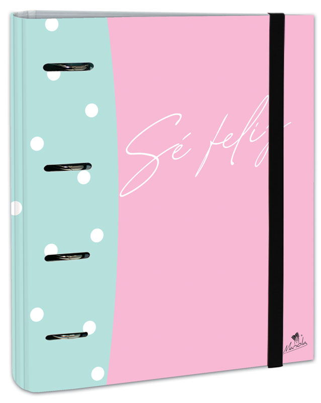 EXPOSITOR CARPEBLOCK 4 ANILLAS 40 MM CARTÓN FORRADO EN PAPEL PASTEL PLASTIFICADO MATE CON FRASES