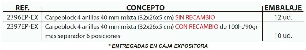 EXPOSITOR CON CARPEBLOCK 4 ANILLAS 40 MM CARTÓN FORRADO EN PAPEL IMPRESO CON DISEÑOS PLASTIFICADO MATE