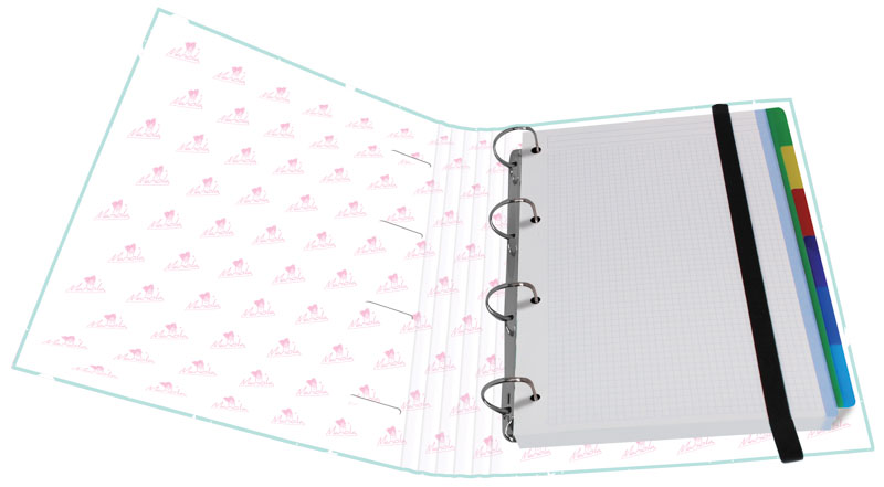 EXPOSITOR CARPEBLOCK 4 ANILLAS 40 MM CARTÓN FORRADO EN PAPEL PASTEL PLASTIFICADO MATE CON FRASES