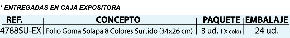 Inicio / Carpetas con gomas y solapas / EXPOSITOR CON 24 CARPETAS GOMAS Y SOLAPAS CARTÓN FORRADO EN PAPEL PASTEL PLASTIFICADO MATE