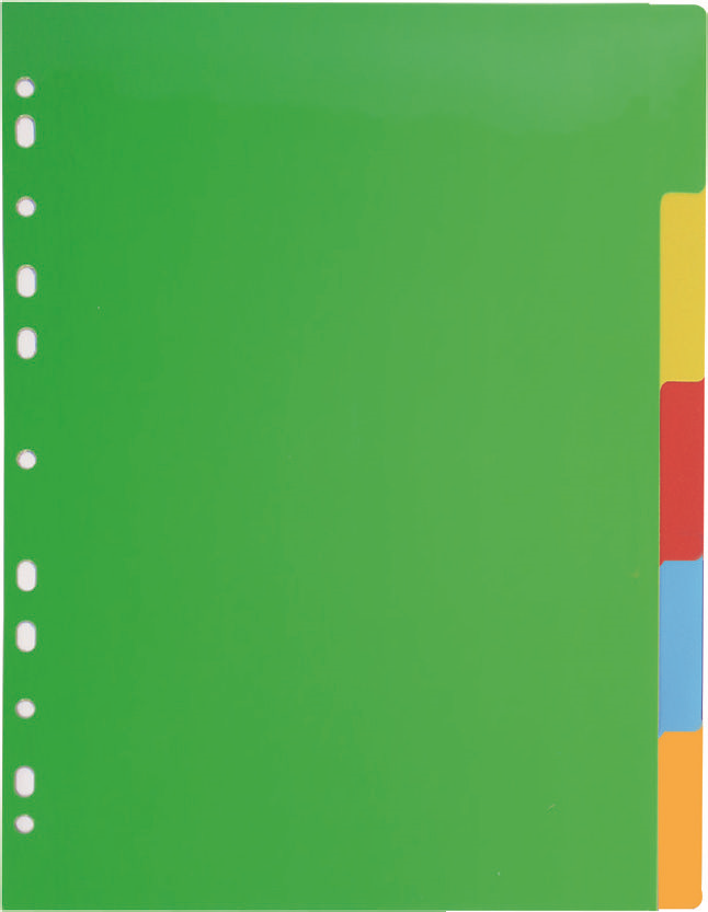 Inicio / Subcarpetas, Tapas, Hojas, Scrapbooking, Separadores / SEPARADOR A4 POLIPROPILENO COLOR SURTIDO