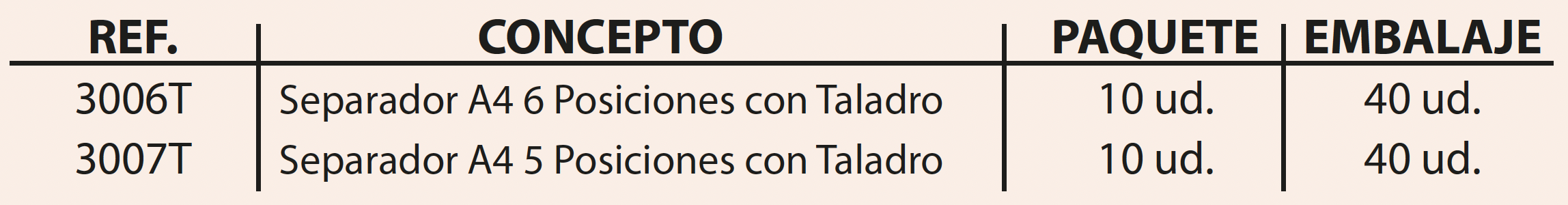 • SEPARADOR A4 CARTULINA BLANCA 180gr. CON TALADRO