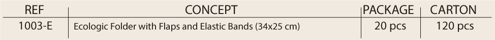 Inicio / Ecológico ECO / 100% RECYCLABLE ECOLOGIC CARDBOARD FOLDER WITH FLAPS AND ELASTIC STRAPS 500 G