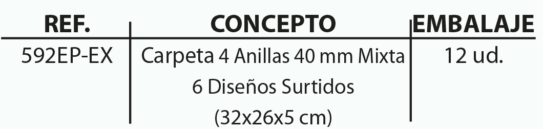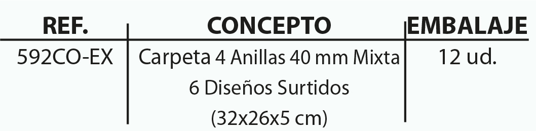 EXPOSITOR 12 CARPETAS 4 ANILLAS 40 MM CARTÓN FORRADO EN PAPEL IMPRESO CON DISEÑOS PLASTIFICADO MATE