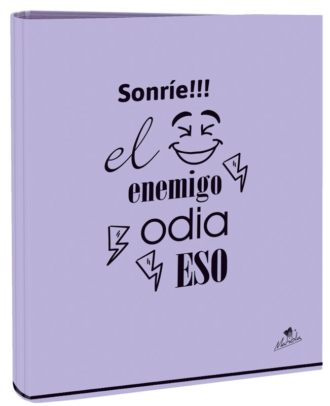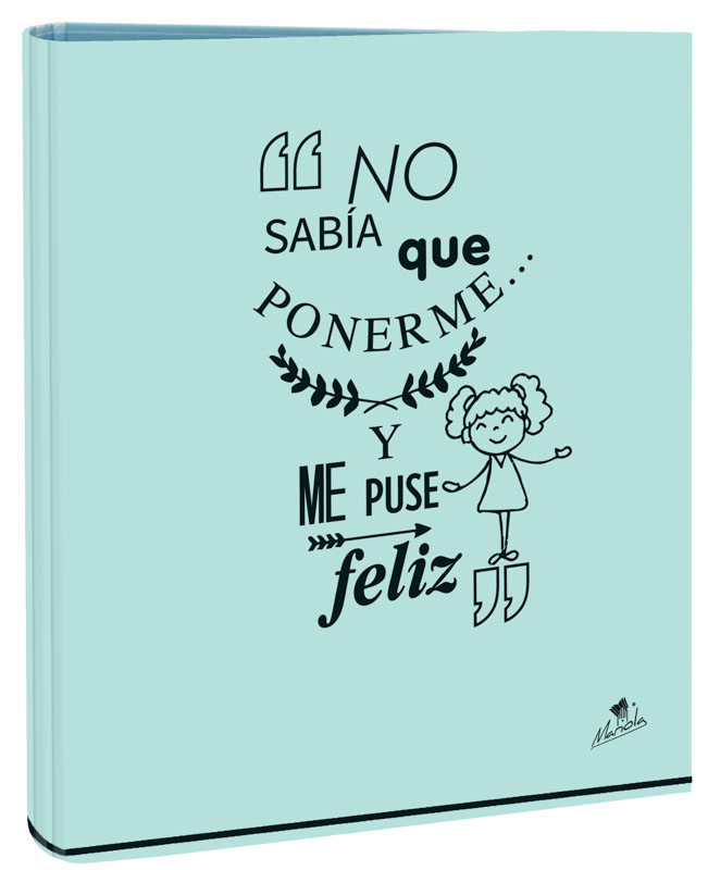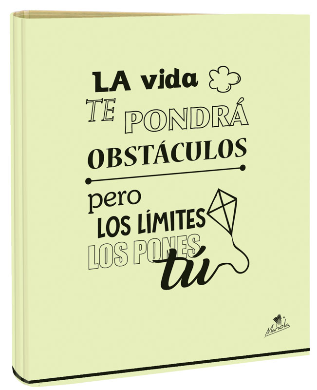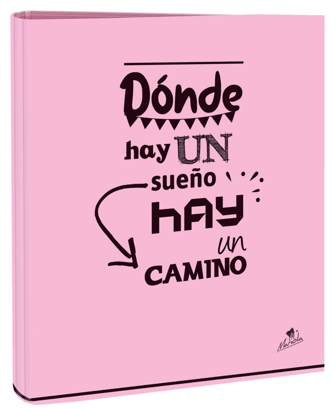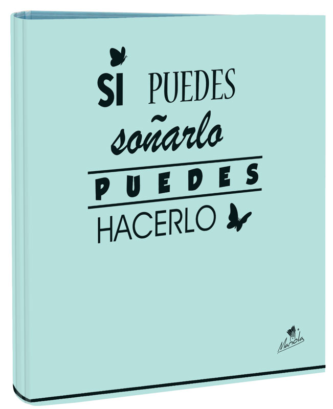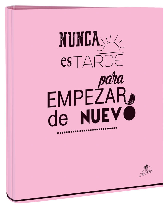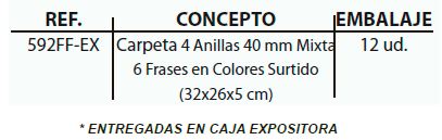 EXPOSITOR CON 12 CARPETAS 4 ANILLAS 40 MM CARTÓN FORRADO EN PAPEL PASTEL PLASTIFICADO MATE CON FRASES
