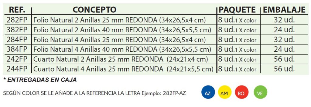 • CARPETA ANILLAS CARTÓN COMPACTO GOFRADO COLORES