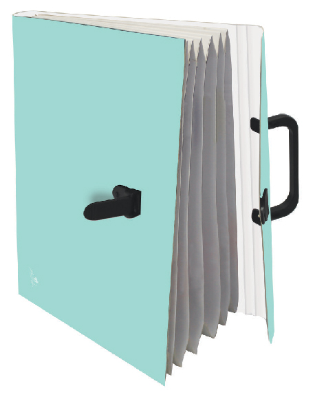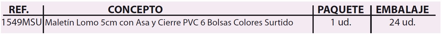 MALETÍN FUELLE ACORDEÓN 6 BOLSAS CARTÓN IMPRESO 500 gr. PLASTIFICADO MATE CON ASA Y CIERRE DE PVC